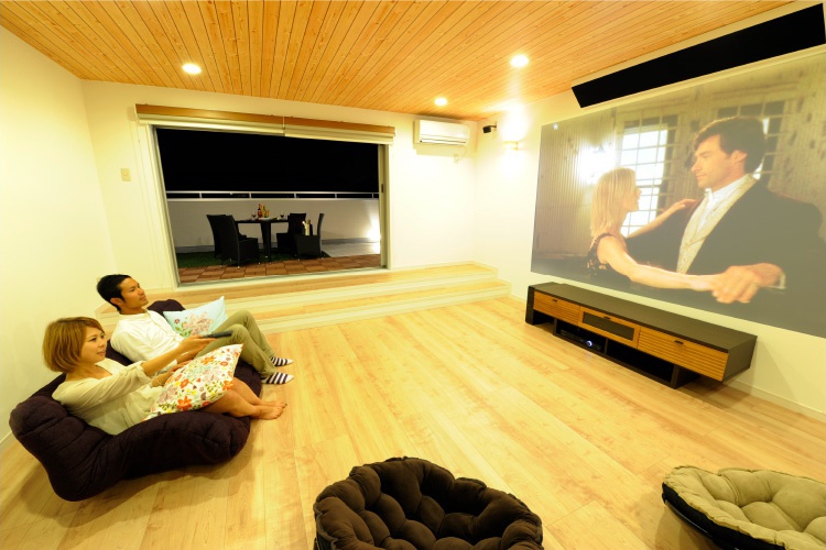 空とつながる3Fスイートルームでは、夫婦で夜風を感じながら映画を楽しむ。時には、大画面でゲームをするのもオススメです。