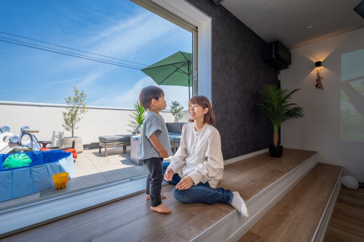 子どもたちは動きはじめると目が離せませんね。でも、スカイリビングならどこかに行ってしまうこともなく、見守れるから安心。