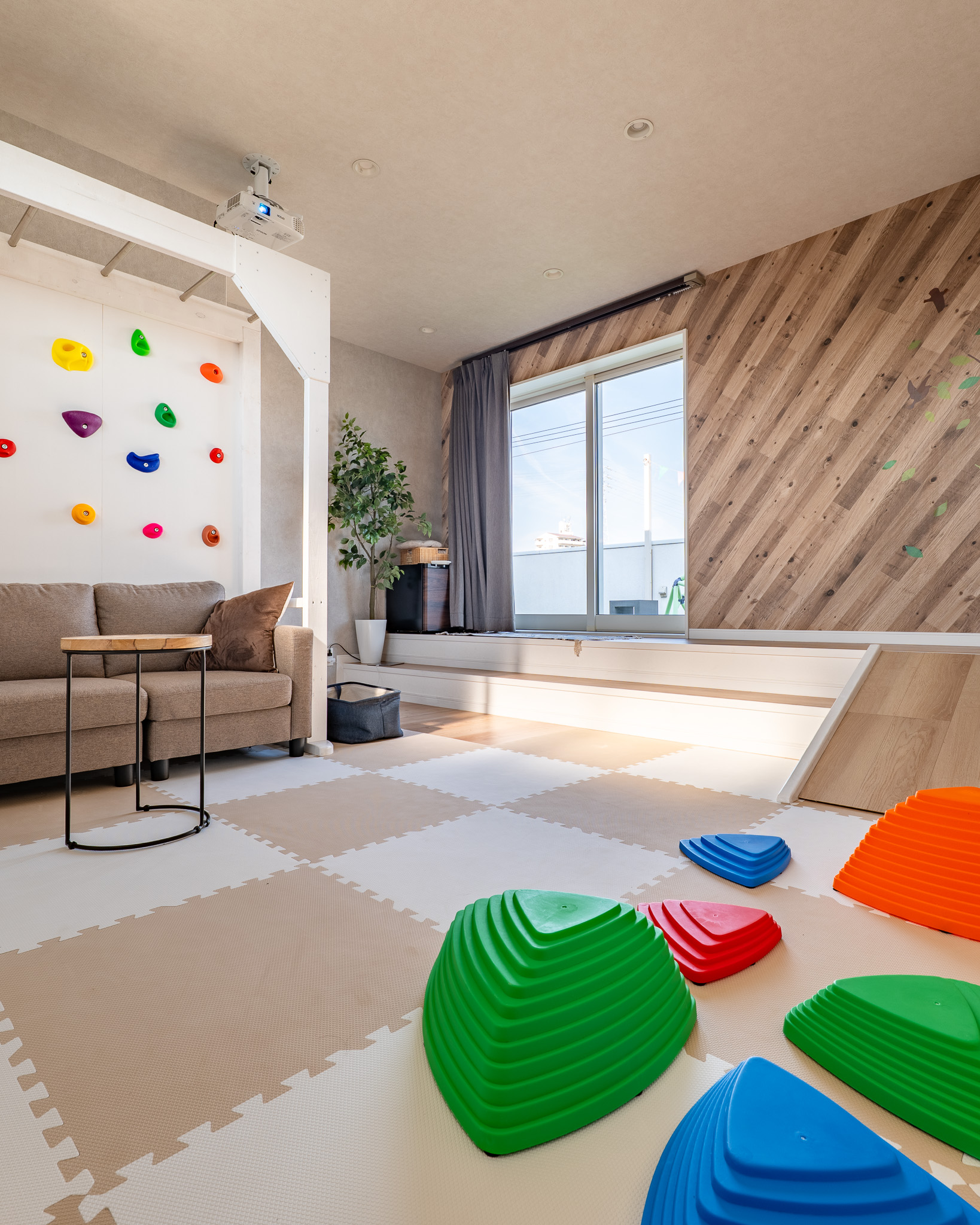 ボルダリングや雲梯など家の中にいながら遊べる空間